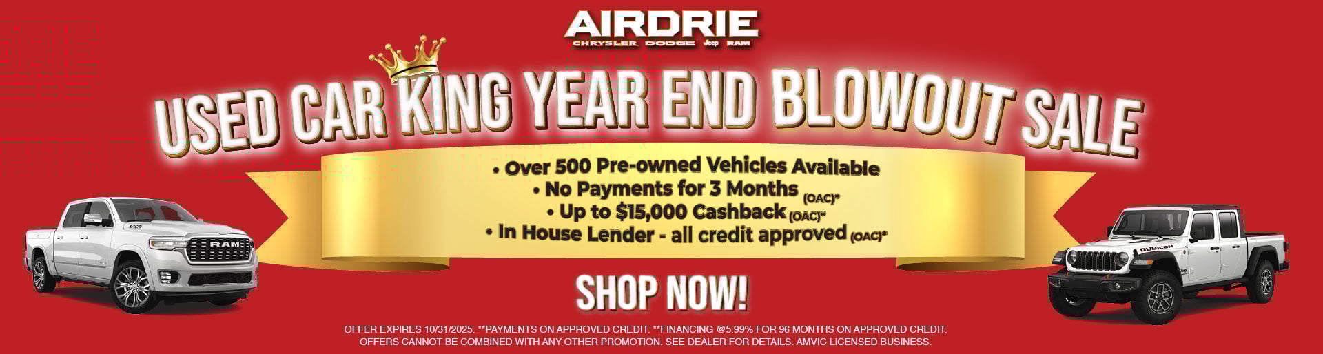 Airdrie Dodge is proud to be the top dealer for new and used Chrysler, Dodge, Jeep, and RAM vehicles in Airdrie, AB. Located down the road from the Rob Ebbsen Twin Arena, we’ve spent over 40 years dedicating ourselves to providing the very best in automotive sales and services to all our customers. Our commitment to exceptional customer service has earned us the Consumer Satisfaction Award and Dealer of the Year Award multiple times from Dealer Rater, as well as the 2025 Quality Business Award. From vehicle sales to car maintenance and servicing, trust Airdrie Dodge for all your automotive needs.